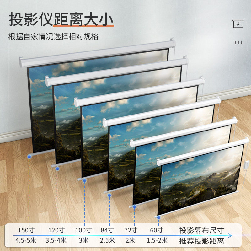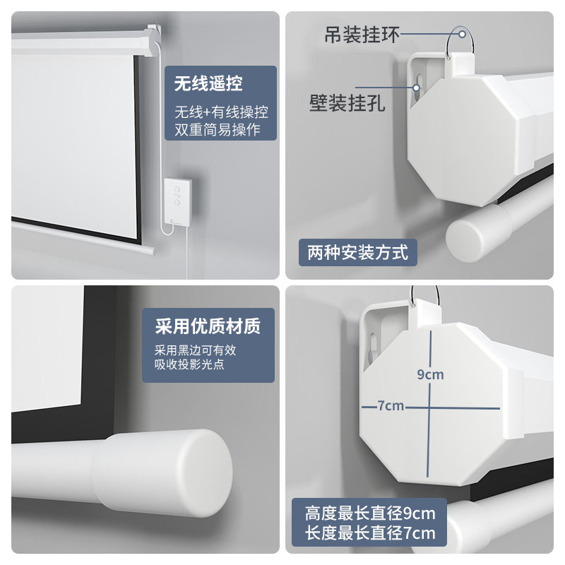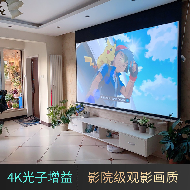 Anti-light projection curtain cloth electric remote control lifting bedroom home projector screen cloth white curtain sticker wall 100120 inch 4K projection screen Applicable extreme rice projection home cinema customizable