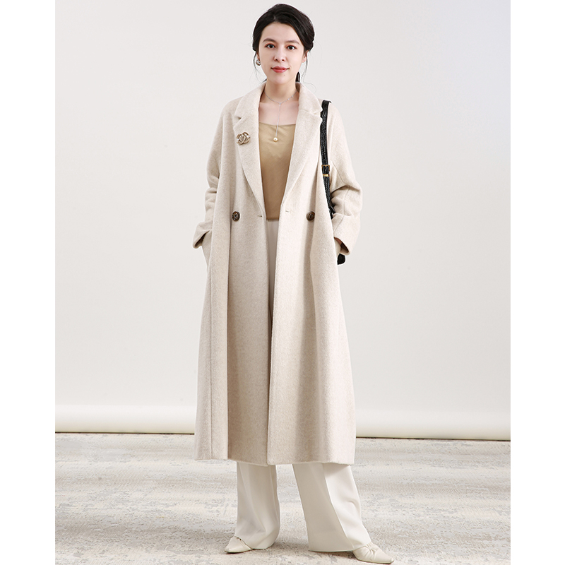 NZ Elegant Temperament Heben Wind Loose Outline over kneecap, rice white wool big coat Thickened Rabbit Suede Jacket
