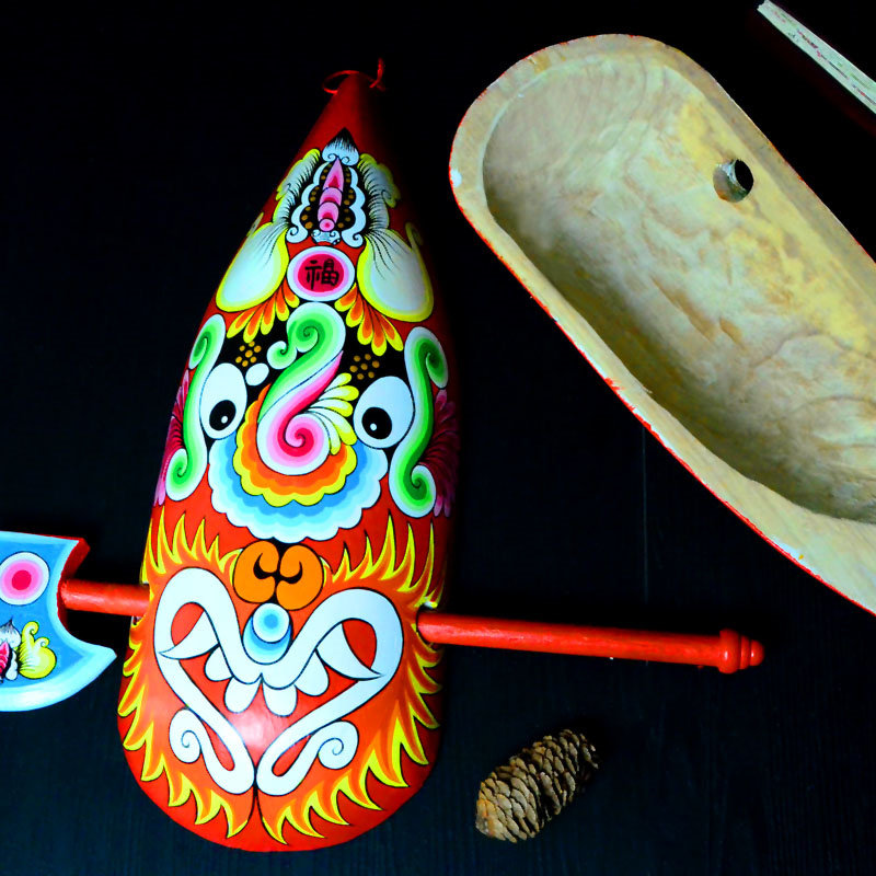 Folk Craft Peking Opera Social Fire Horse Spoon Face Spectrum Decoration Hanging-up Bucket Town Residence Folk Antique Chinese Style Renovation