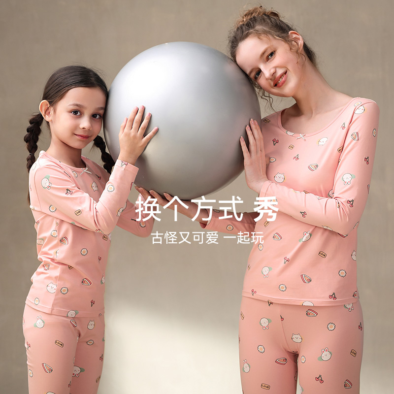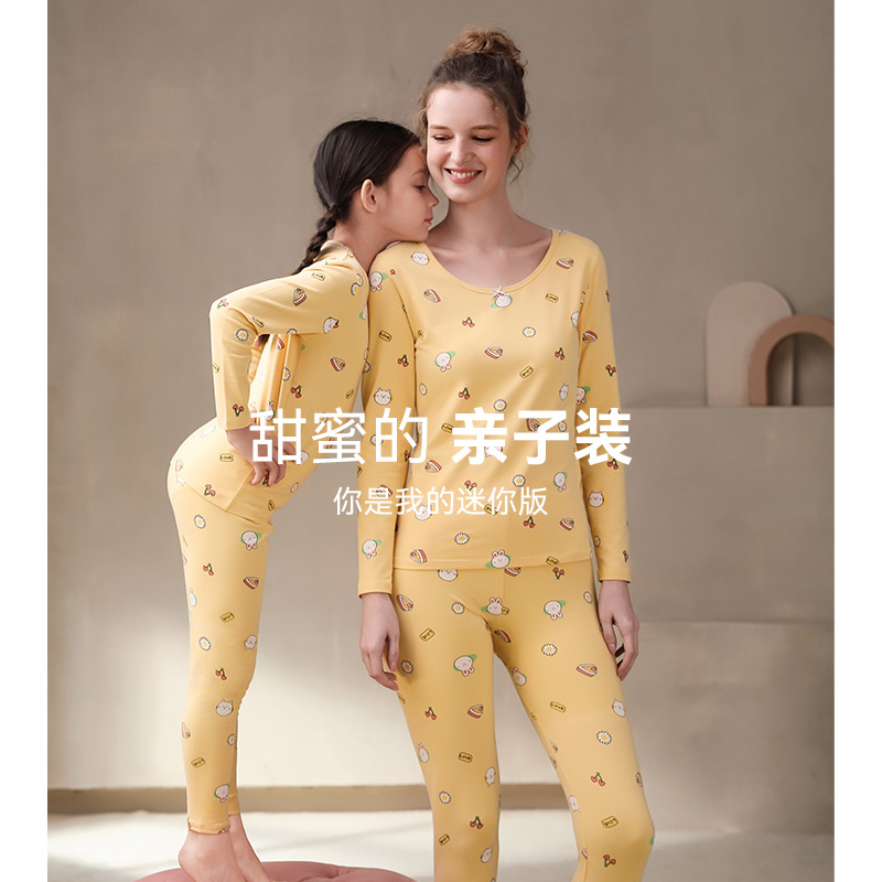 Fenten (regular 10-15 °) children's autumn clothes and trousers women's cotton cartoon girl pajamas mother and daughter thermal underwear