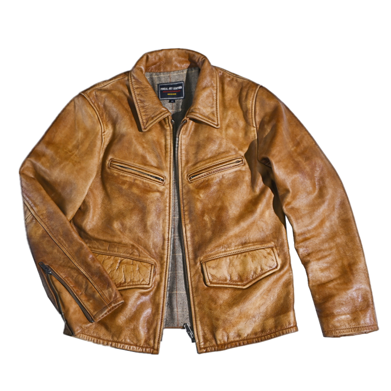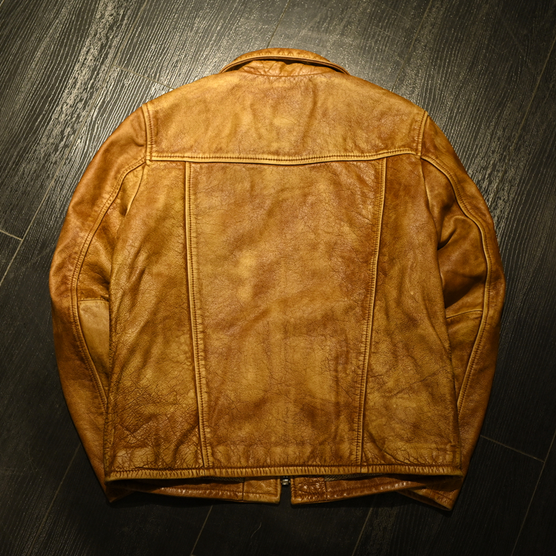 New trend men's clothing retro niche lapel short section rubbed old first layer cowhide casual jacket genuine leather jacket