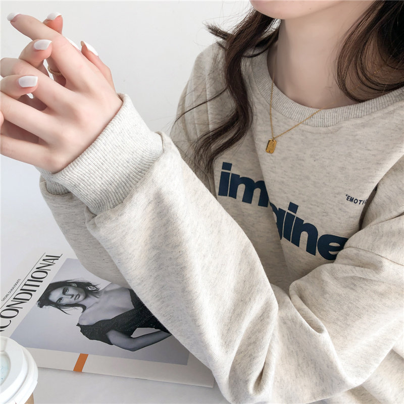 Nursing clothes go out autumn and winter plus velvet hot mom fashion postpartum nursing clothes cotton loose solid color long-sleeved round neck thick cotton T