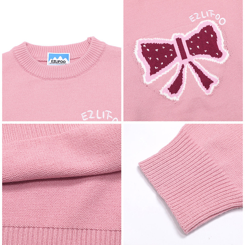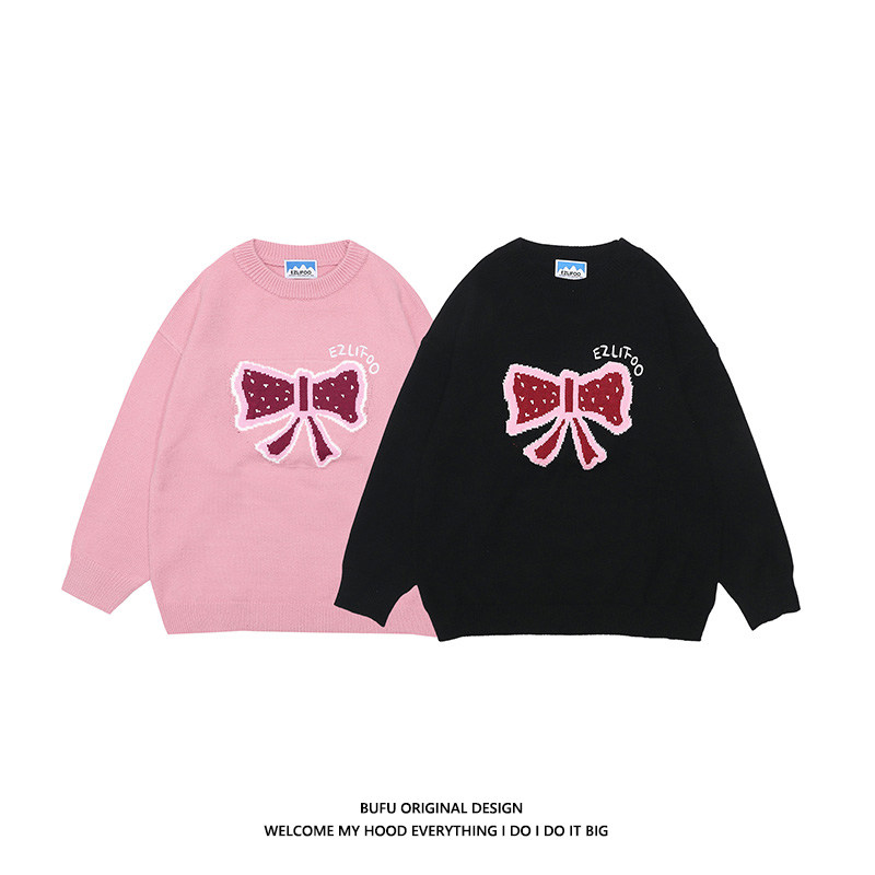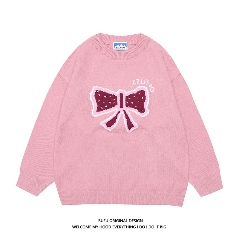 hundreds of millions juvenile Guochao small crowdsourced retro butterfly knot sweater male and female autumn and winter lovers oversize salt tie-knitted sweatshirt