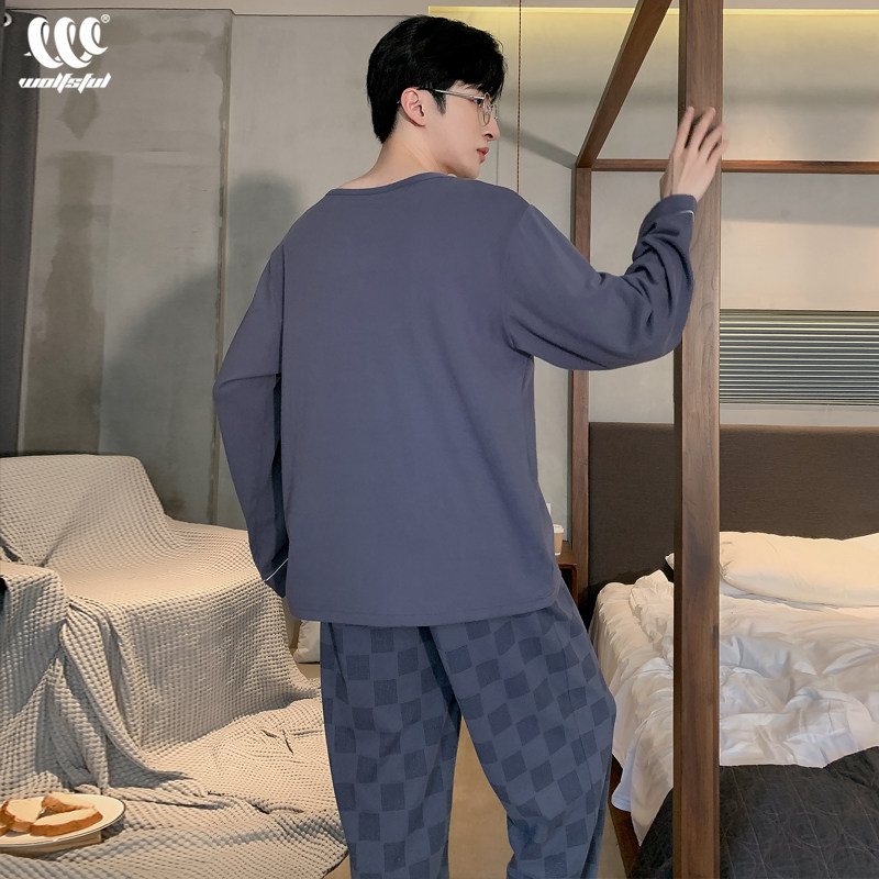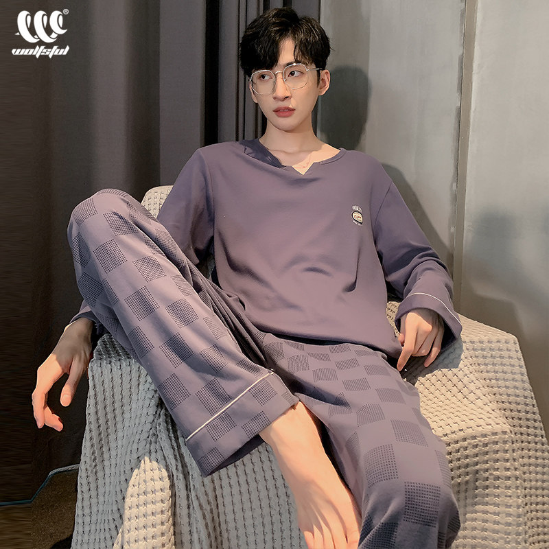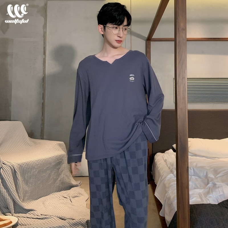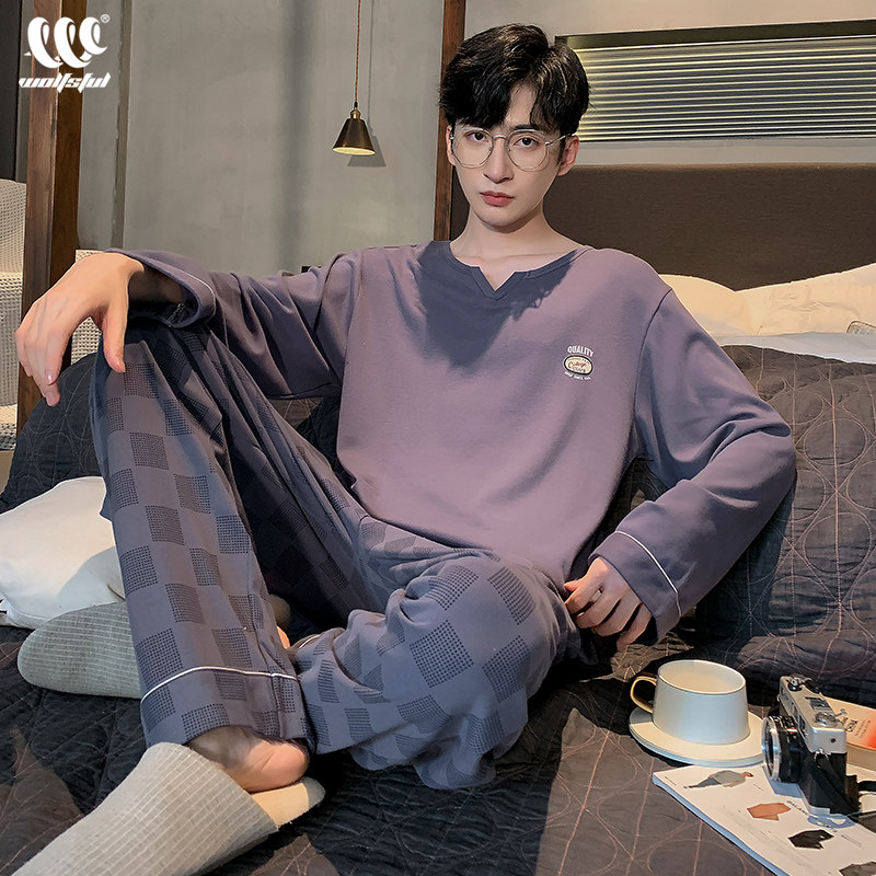 Men's pure cotton pyjamas in spring and autumn with long sleeves minimalist casual teen large size can be worn out of the suit jacket Home Residence Suit Suit