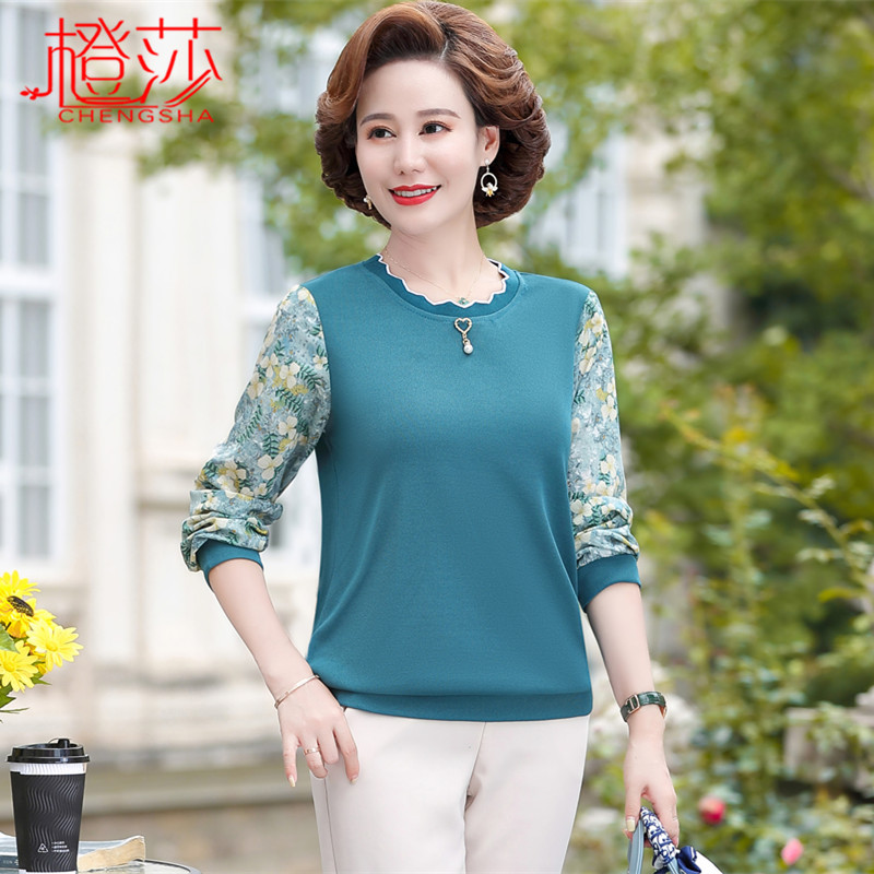 Mom autumn long-sleeved top suit 2021 new 40-year-old 50-year-old Western style small shirt middle-aged and elderly women's spring bottoming shirt