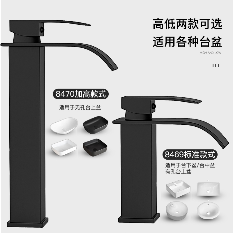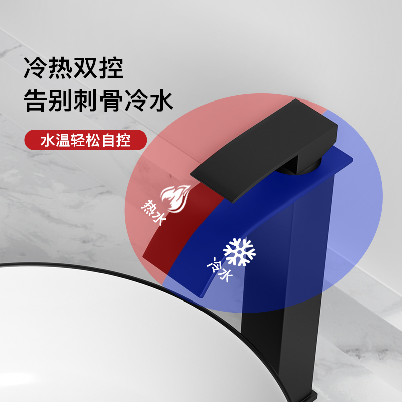 Waterfall faucet lightweight stainless steel ceramic valve core hot and cold tube table top and bottom basin powder room bathroom cabinet simple