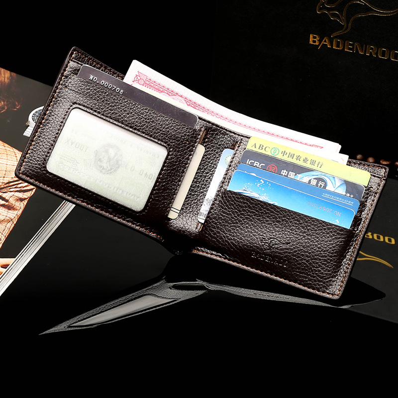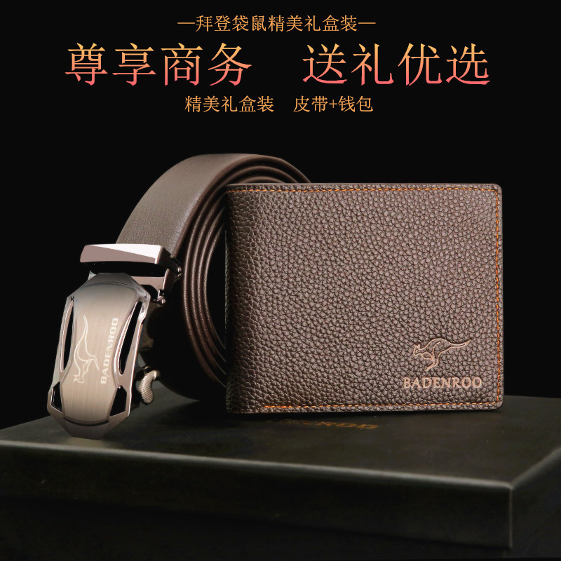 New men's wallet short leather wallet multi-card position first layer cowhide wallet belt gift box set black brown