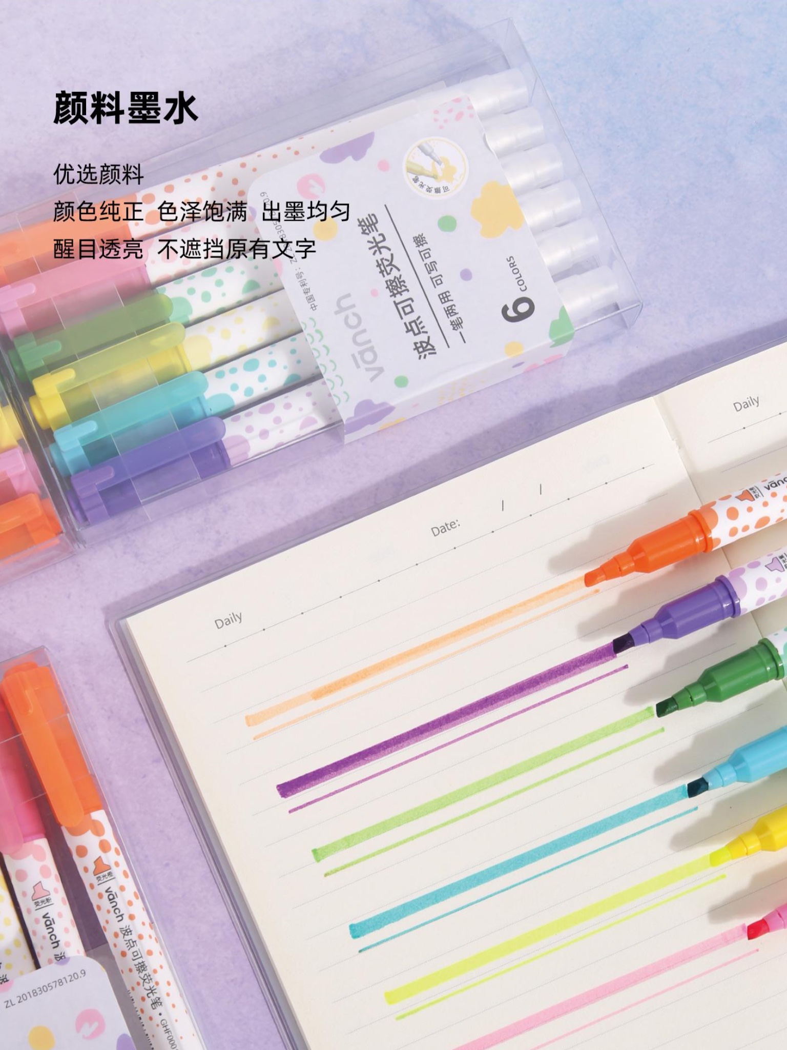 Betwevān C H Wave Point Erasable Fluorescent Pen Six Color Suit Fluorescent Pen