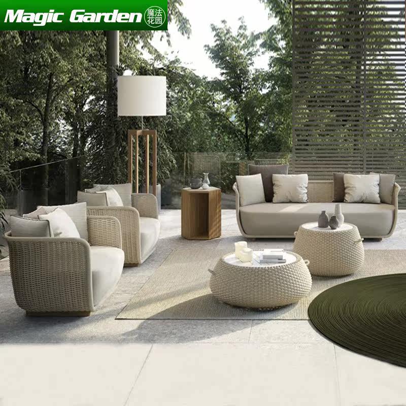 Nordic Outdoor Rattan Sofa Courtyard Balcony Leisure Rattan Chair B&B Outdoor Design Coffee Table Combination Modern Simple