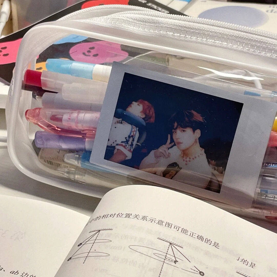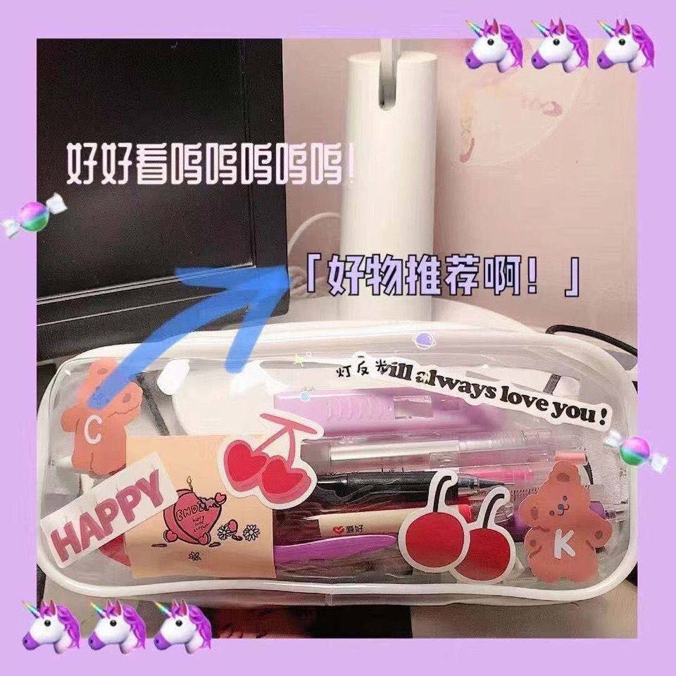 Transparent white pen bag - Image style(Follow shop transparent white pen bag - Bear hanging piece(super good look transparent white pen bag - Bear sticker transparent white pen bag - Wood Li cartoon sticker transparent