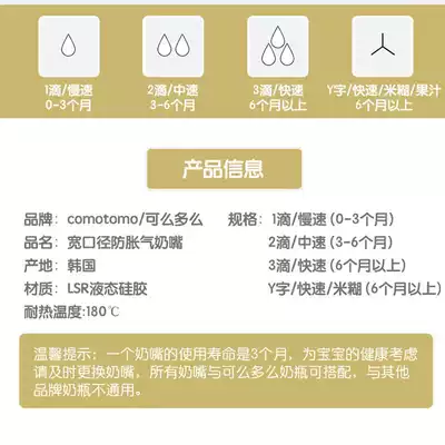 One drop flow rate (0-3 months) two drops flow rate (3-6 months) three drops flow rate (6 months or more) Y-shaped hole (6 months or more)