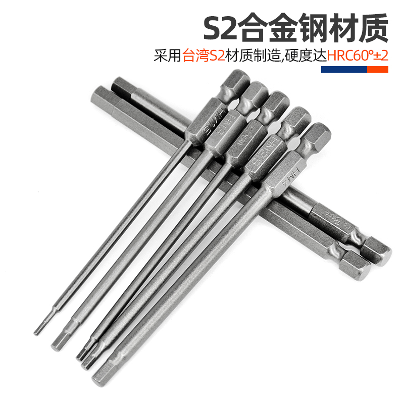 labear Lebo lengthened inner hexagonal pneumatic screwdriver head 1 4 electric screwdriver head inner hexagonal S2 plus magnetic 75-100MM