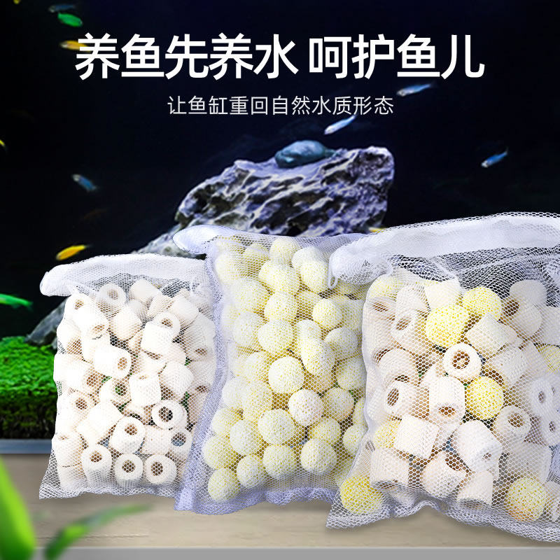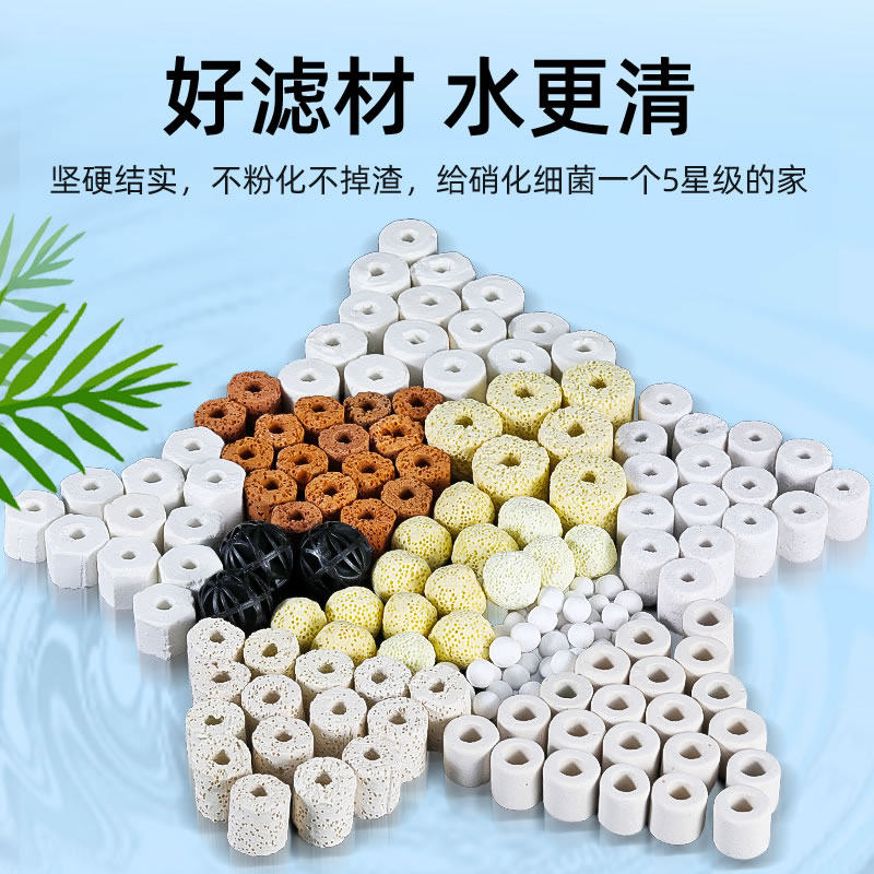 Ten-in-one filter material 480g Ten-in-one filter material 5 bags Glass ceramic ring Hexagonal ring Red technology red White technology ring Biological ring Quartz bacterial beads Biochemical ball (50 pieces per bag) Three