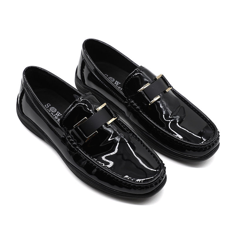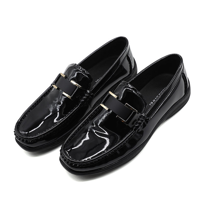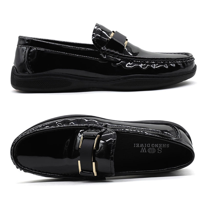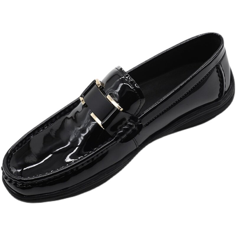 Genuine leather men's shoes 2022 fashion classic bright leather casual leather shoes men's genuine leather soft bottom metal buckle peas shoes slip on