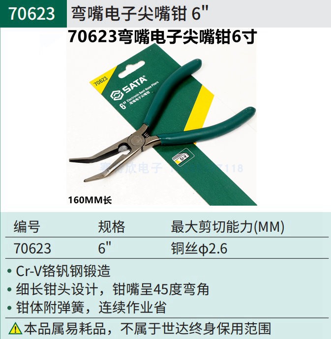 Seda tool 70623 bent mouth electronic tip pliers 6 ' ' Bent Tip Pliers 70613A stainless steel 45 ° pliers
