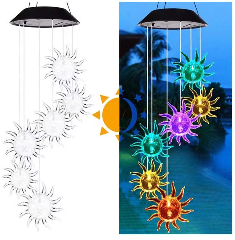 Solar wind bells light chandelights After hanging lanterns Balcony Patio Patio Garden Outdoor Decoration Hummingbird Colorful Atmosphere Arrangement