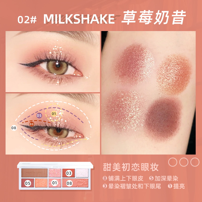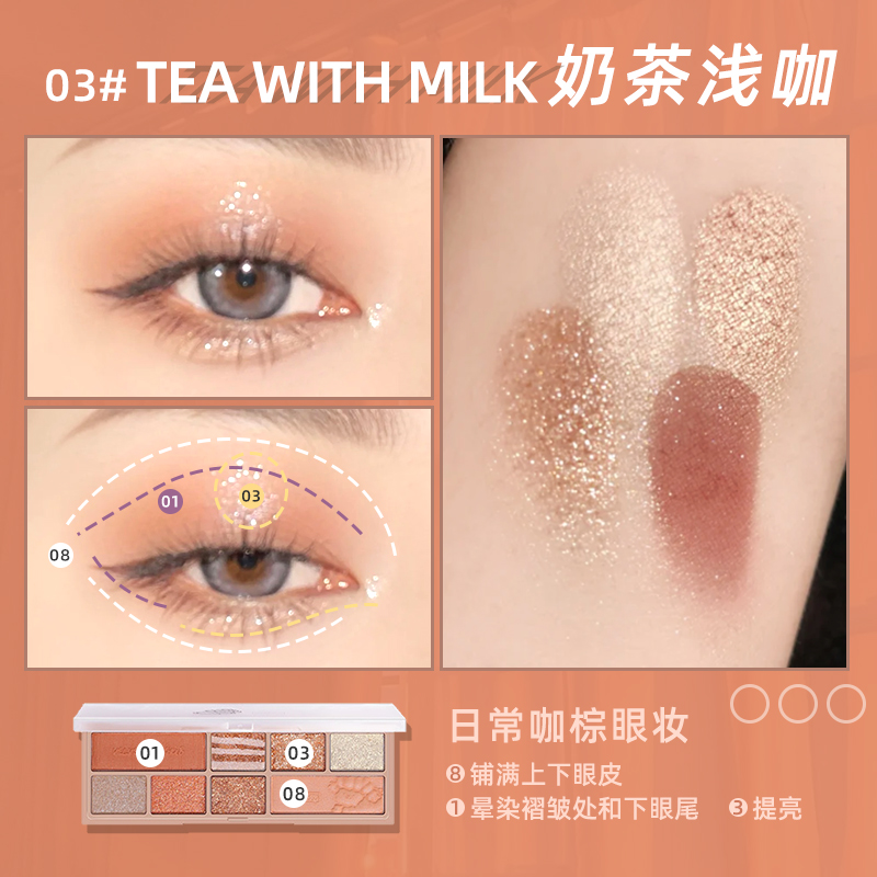 01#甜柚物语(send an eye shadow brush) 02#草莓奶昔(send an eye shadow brush) 03#奶茶盘(send an eye shadow brush)