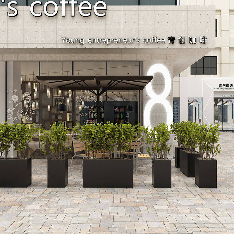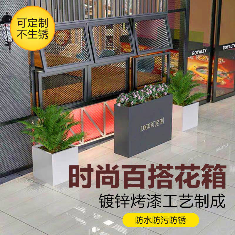 Outdoor Stainless Steel Flower Case Partition Patio Iron Art Flower Trough Flower Pots Commercial Street Custom Greenery Rustproof Dining Hall Fence