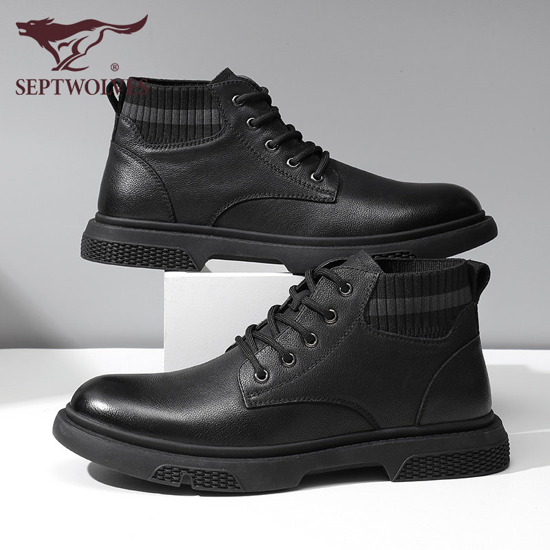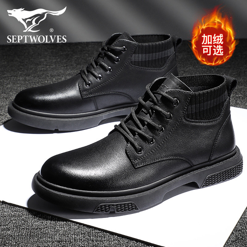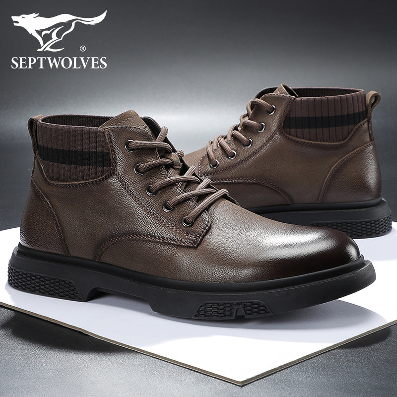 Septwolves men's shoes leather high-top leather shoes men's 2022 autumn new casual Martin shoes mid-tube tooling boots