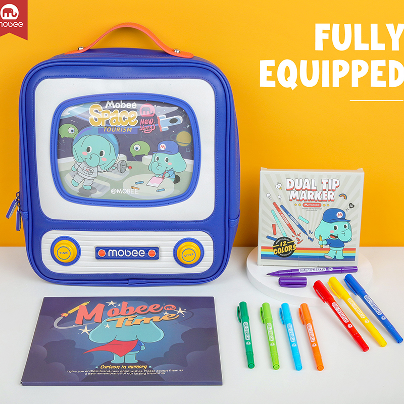MOBEE Mobe Kindergarten School Bag Children Middle Class Young Children Double Shoulder Bag Boy Gift Box 3-6 Birthday Present