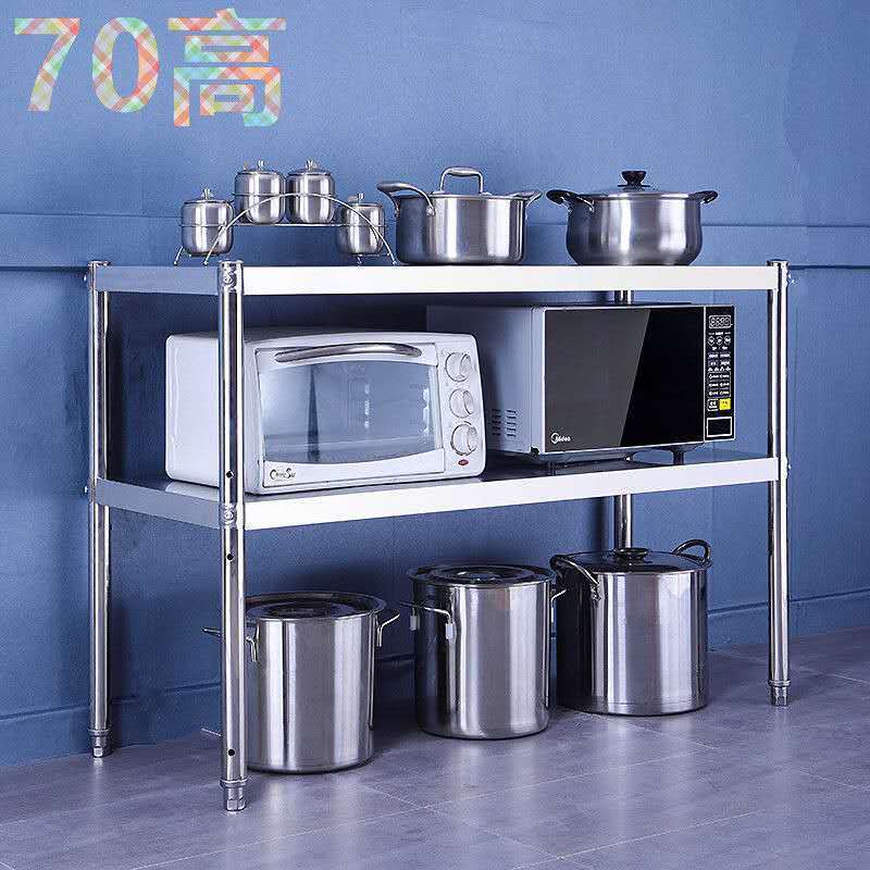 Two-storey shelf thickened stainless steel kitchen floor multi-storey microwave oven storage shelf supplies