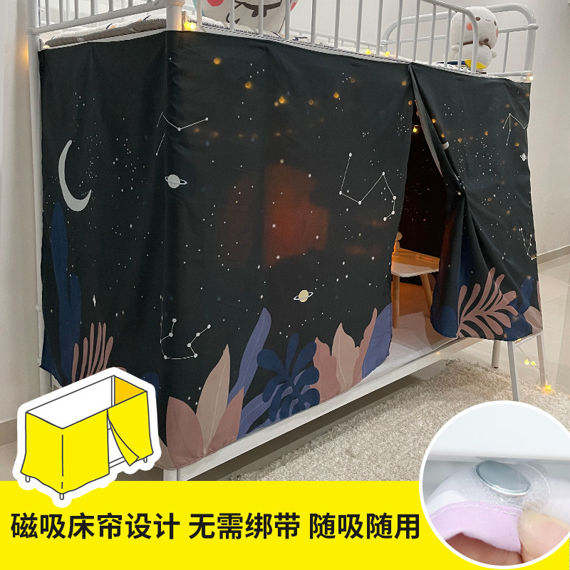 Room Pint Magnetic Attraction Style Bed Curtain Dorm Girl Up And Down Sleeping Room Single Bed Single Bed Full Enclosed Convenient Shading Curtain Dust Resistant