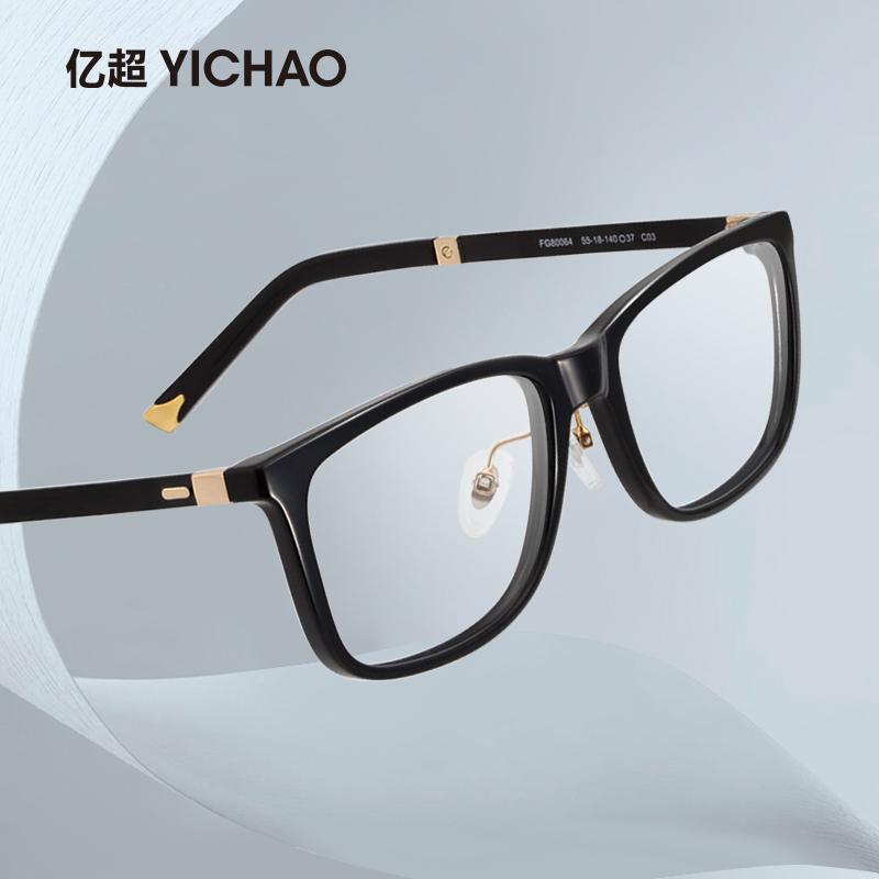 Yichao retro square plate myopia glasses men's full-frame fashion black frame can be equipped with degree finished optical glasses frame
