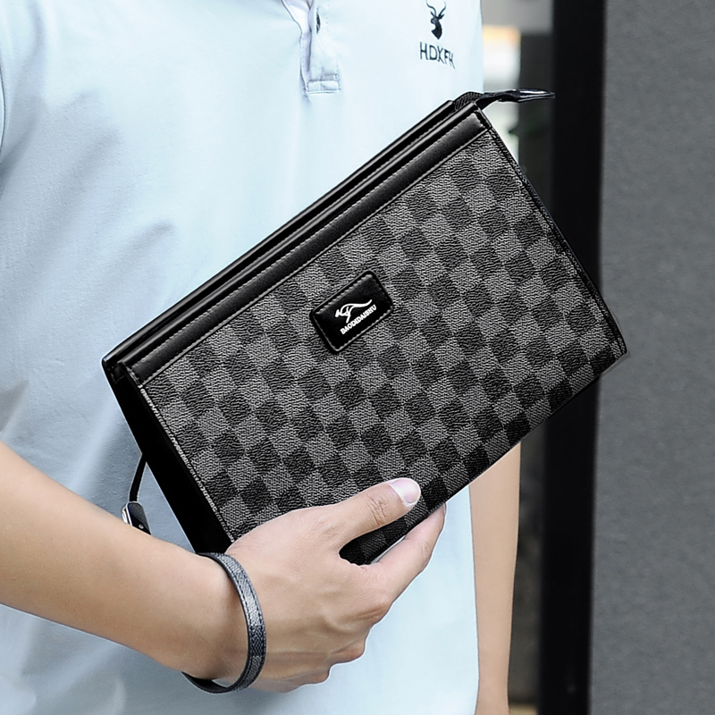 Treasure Tearoom Kangaroo Hand Grab Bag Men Genuine Leather Texture Light Extravagant Business Envelope Bag Large Capacity Casual Clip Pack 2021 New