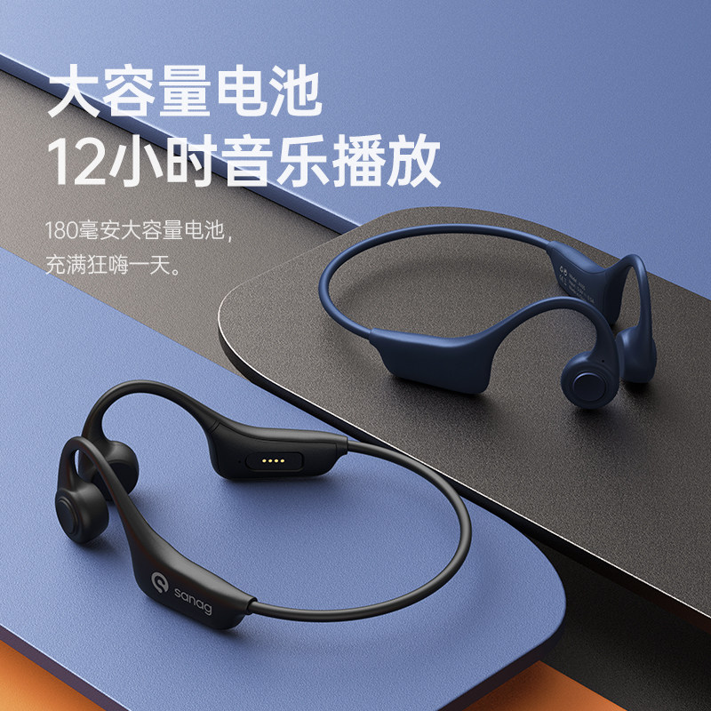 British Sanag Bone Conduction Bluetooth Headphones Bring 32G Memory Sports Type Running Private Wireless Not Ear Waterproof Fitness 2021 New Noise Reduction Hanging Neck Ear Hanging bone sensation A10S