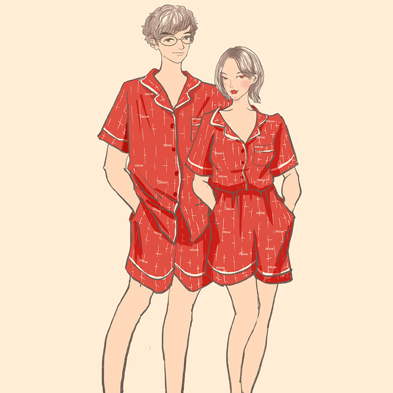 The Summer 2021 bride bride married red pajamas couple in festive home dress suit men and women's shorts suit