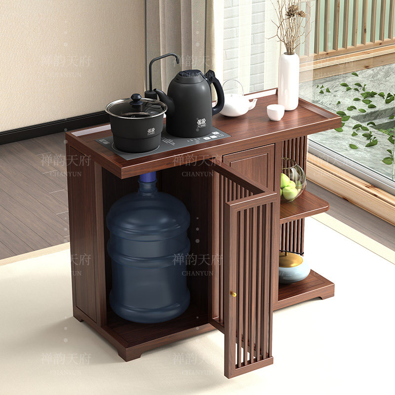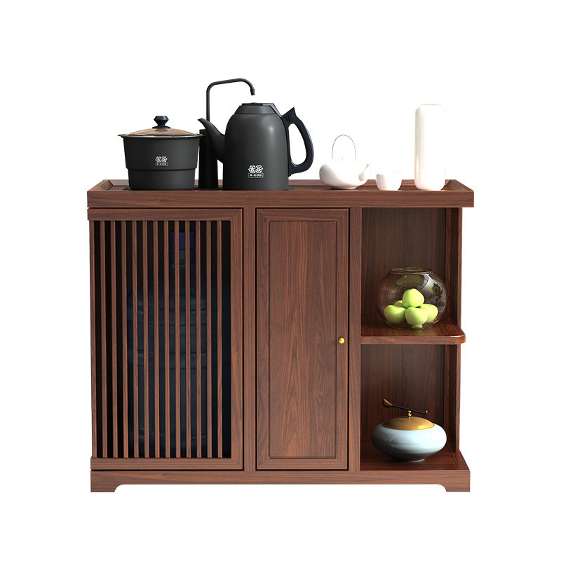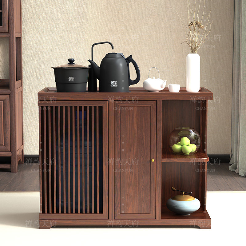 New Chinese-style solid wood tea cabinet and kettle integrated tea side cabinet under the bucket storage black walnut modern furniture