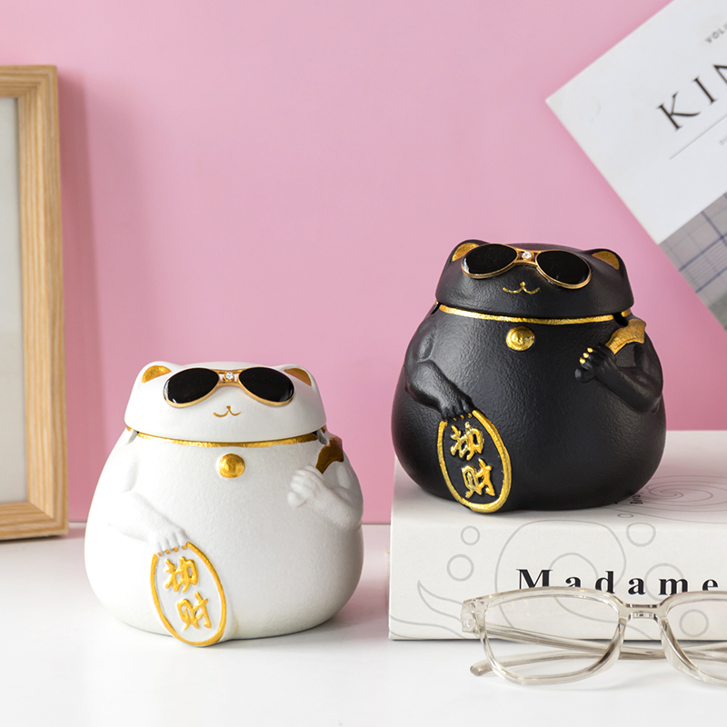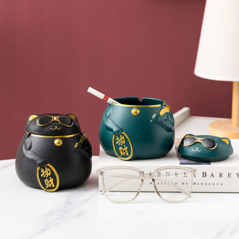 Creative Ceramic Ashtrays With Lid Home Tea Table Desktop Robbery Cat Swing Piece Office Windproof Fly Ash Smoke Cylinder-Taobao
