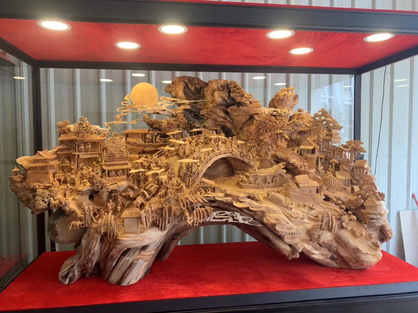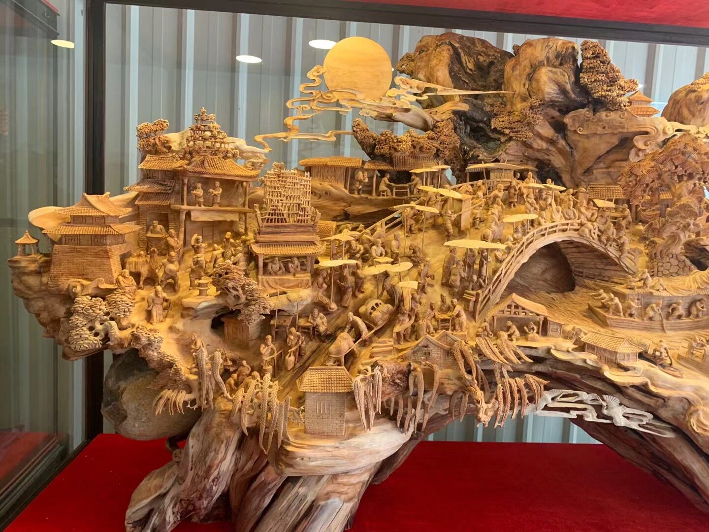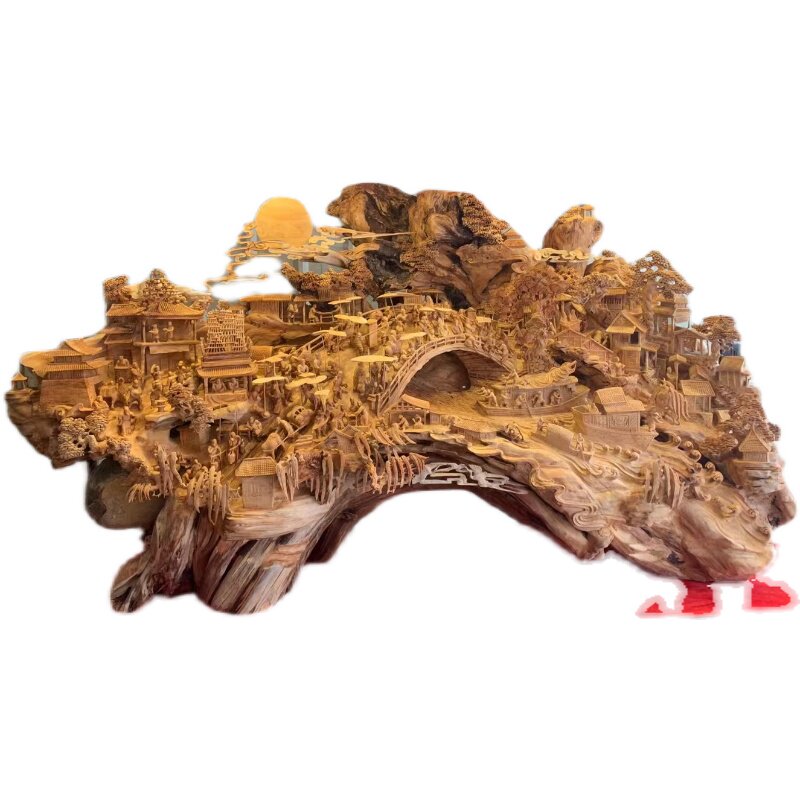 Cliff Root Carving Qingming Shanghe Figure Ornament Golden Silk Nanmu Carving Home Decoration Craft Gift Ornament Landscape Flower Bird Wood Carving