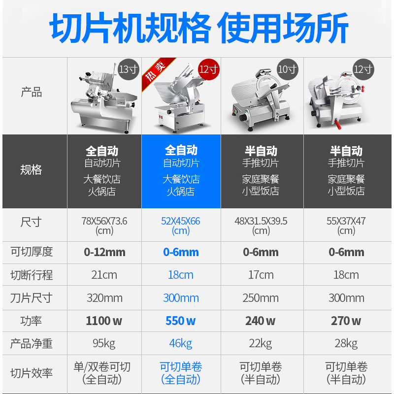 12-inch fully automatic (upgraded section) 12 inch fully automatic (standard) 12 inch fully automatic (deluxe) 13 inch fully automatic (standard) 13 inch fully automatic (upgrade) 13 inch fully automatic (upgrade