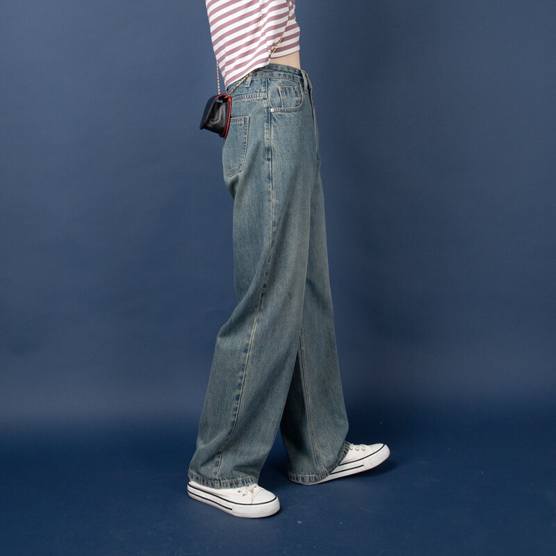 2022 autumn and winter new high-waisted slim straight tube loose washed old wide-leg trousers retro blue jeans women