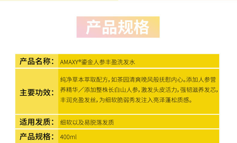 amaxy shampoo Official flagship store Amino Acids Ginseng Mesh Red Shampoo reduces hair loss shampoo 400ml-Taobao