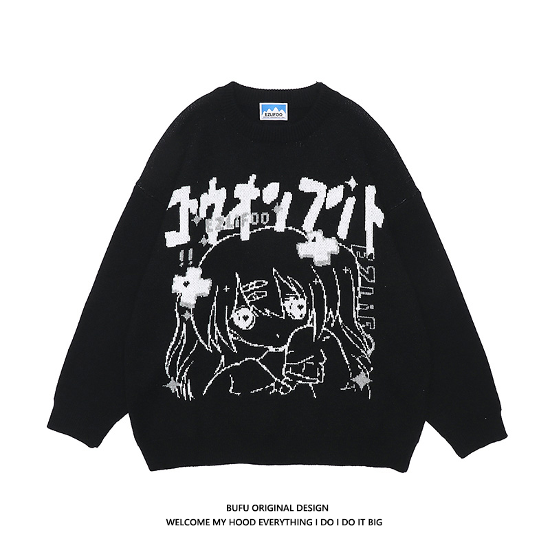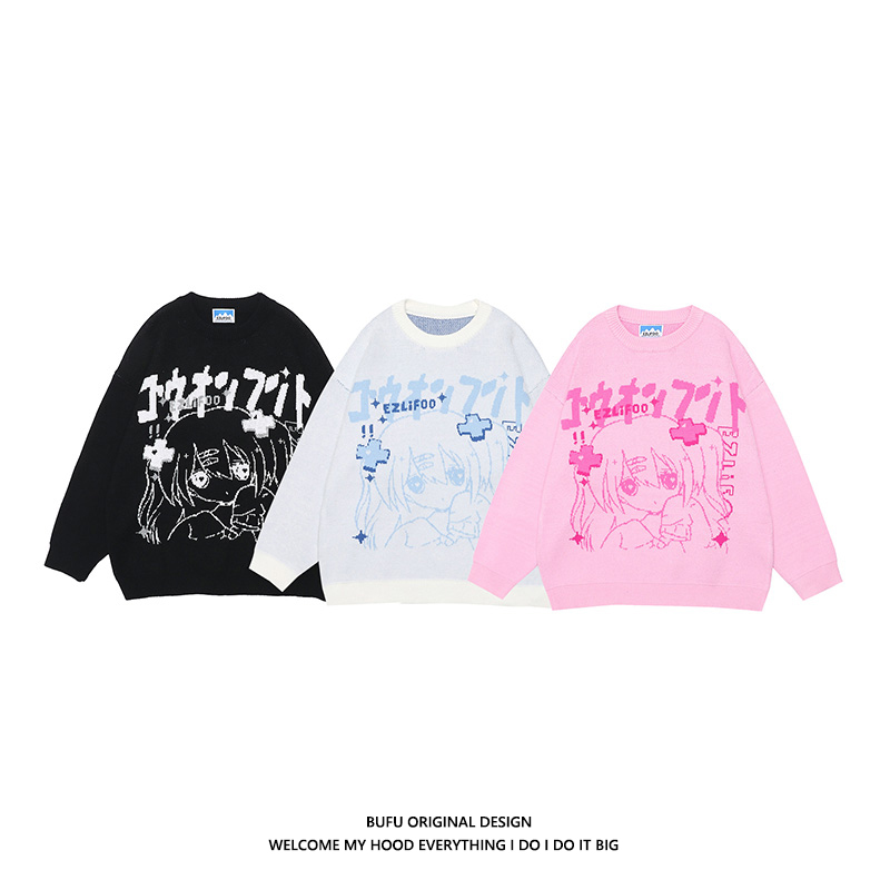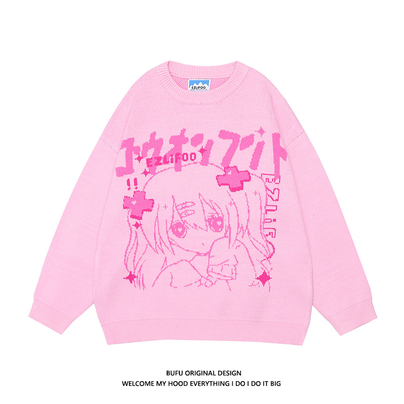 hundreds of millions juvenile Guochao Daily Cartoon Secondary meta-girl sweaters male and female autumn and winter lovers small crowdage knit cardiovert