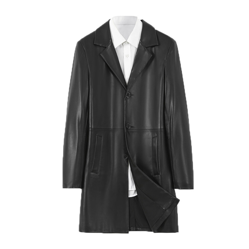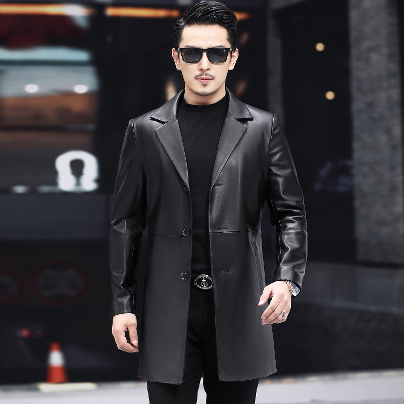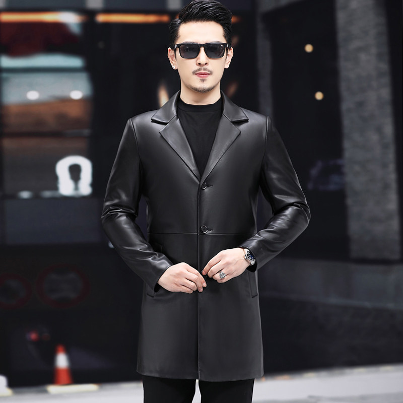 2022 new leather jacket men's Haining sheep leather mid-length windbreaker leather jacket men's suit collar jacket fashion - Taobao