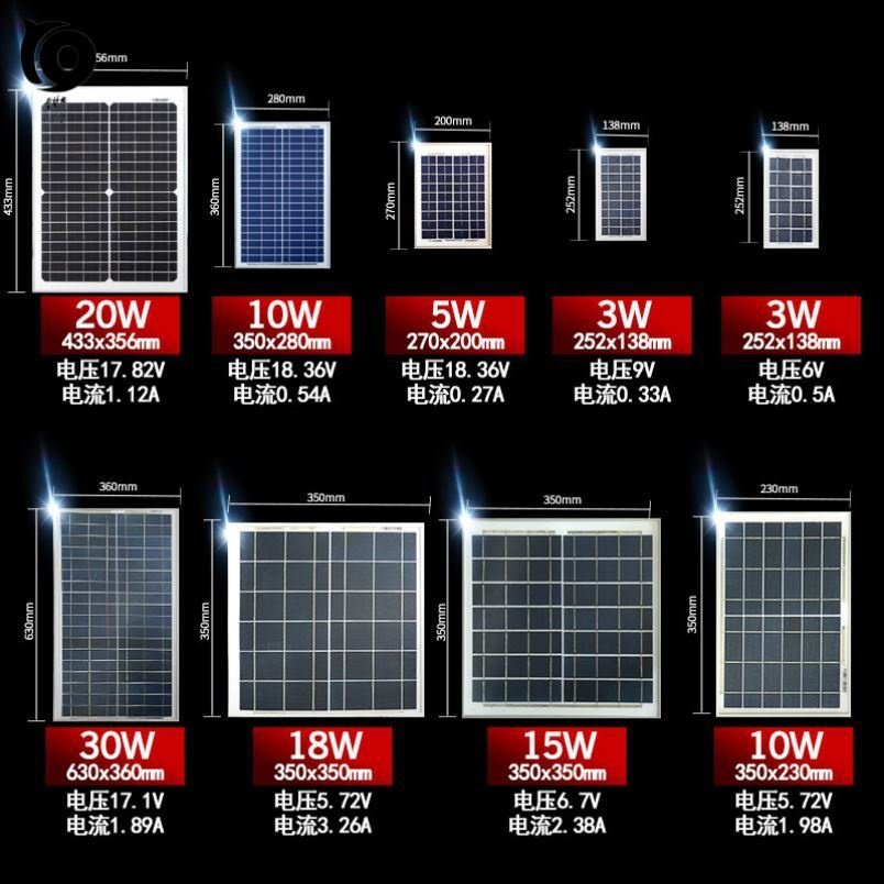 Solar panels 3W6V rechargeable with 3 7V accumulators -I55 solar panels 5W18V able to charge 12V storage batteries -N89 solar panels 10W18V can be filled with 12V storage batteries