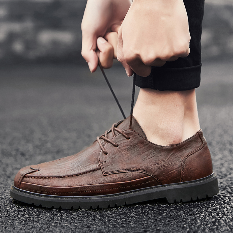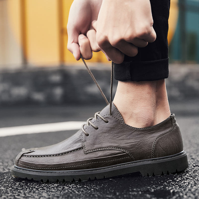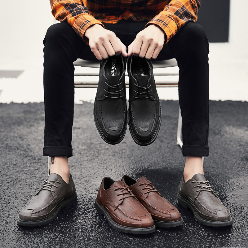 Men's shoes 2022 new spring Korean version trends heightening soft-bottom casual shoes Inn business genuine leather breathable leather shoes man