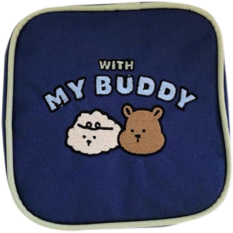 Knock on the Korea Ins Cute Embroidery Little Bear Student Pen Bag Stationery Bag Portable Makeup Bag Cashier Bag