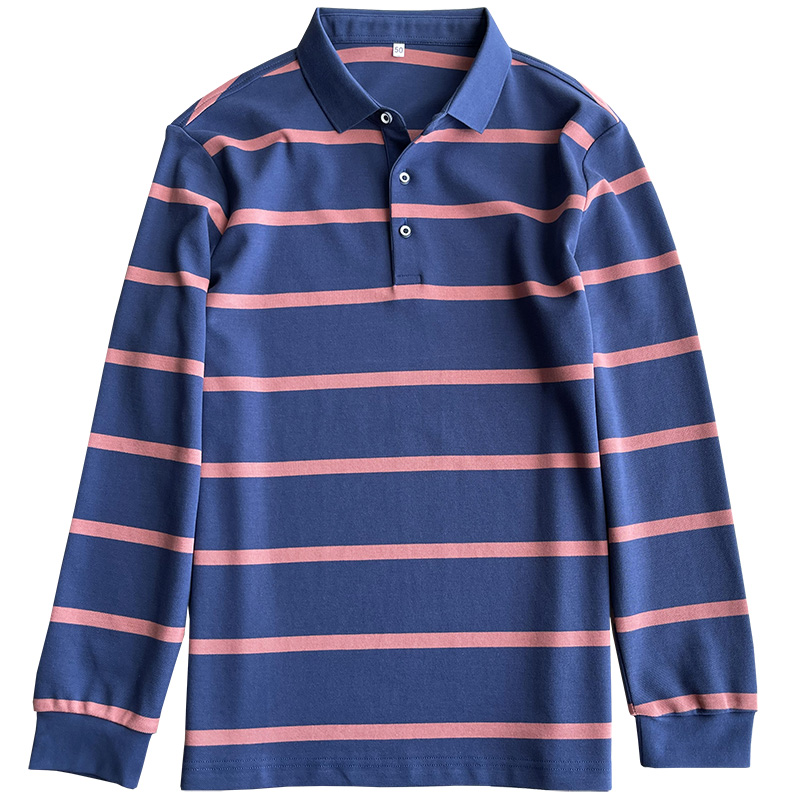 100% cotton shopping mall version ~ striped polo shirt men's long-sleeved lapel spring and autumn top business casual men's T-shirt