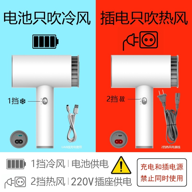 Charging and plug-in dual-use (charging cold air plug-in hot air) white ultra-long battery life charging model