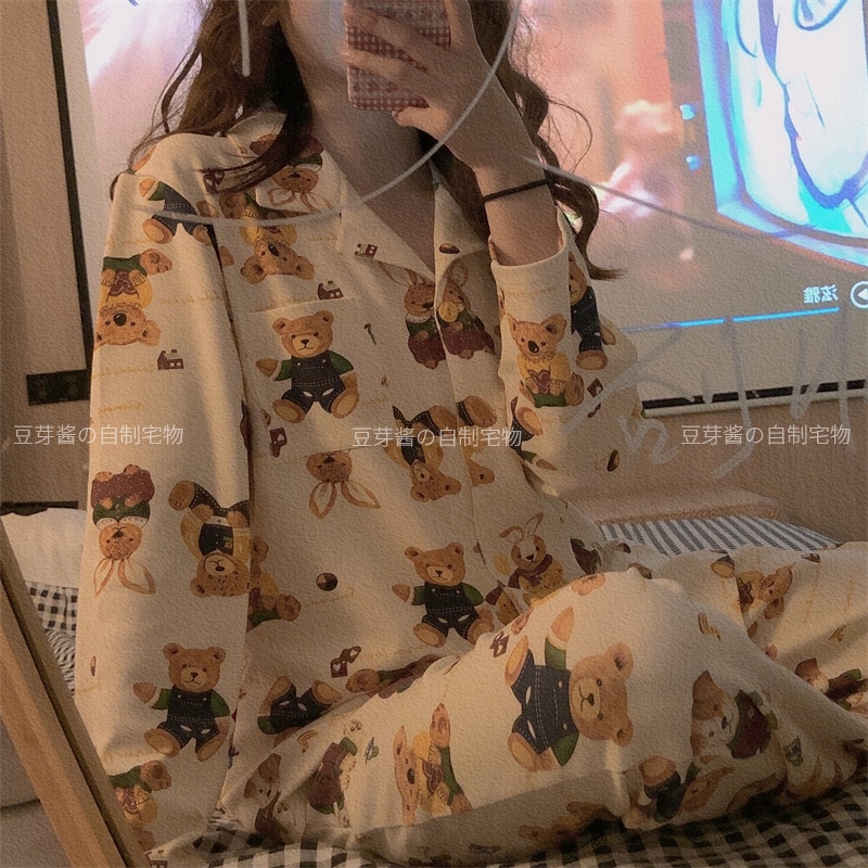 ins south korea ~ soft cute rabbit cute kora sleep yi female pure cotton long sleeve suit can be outworn online reddits ju clothes