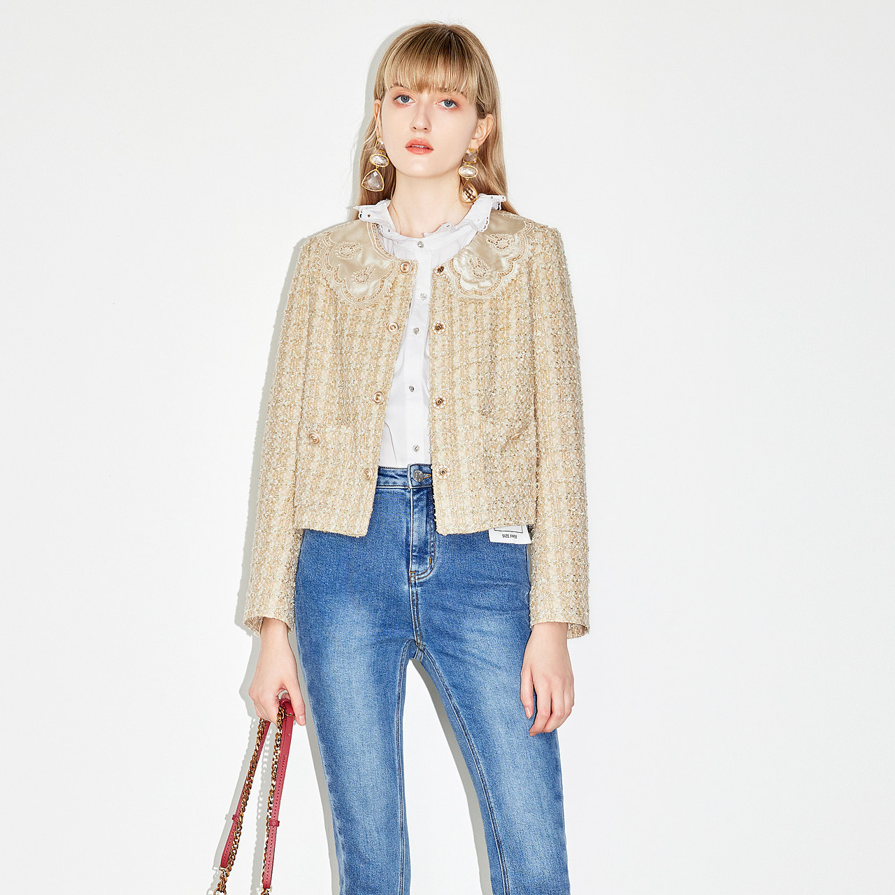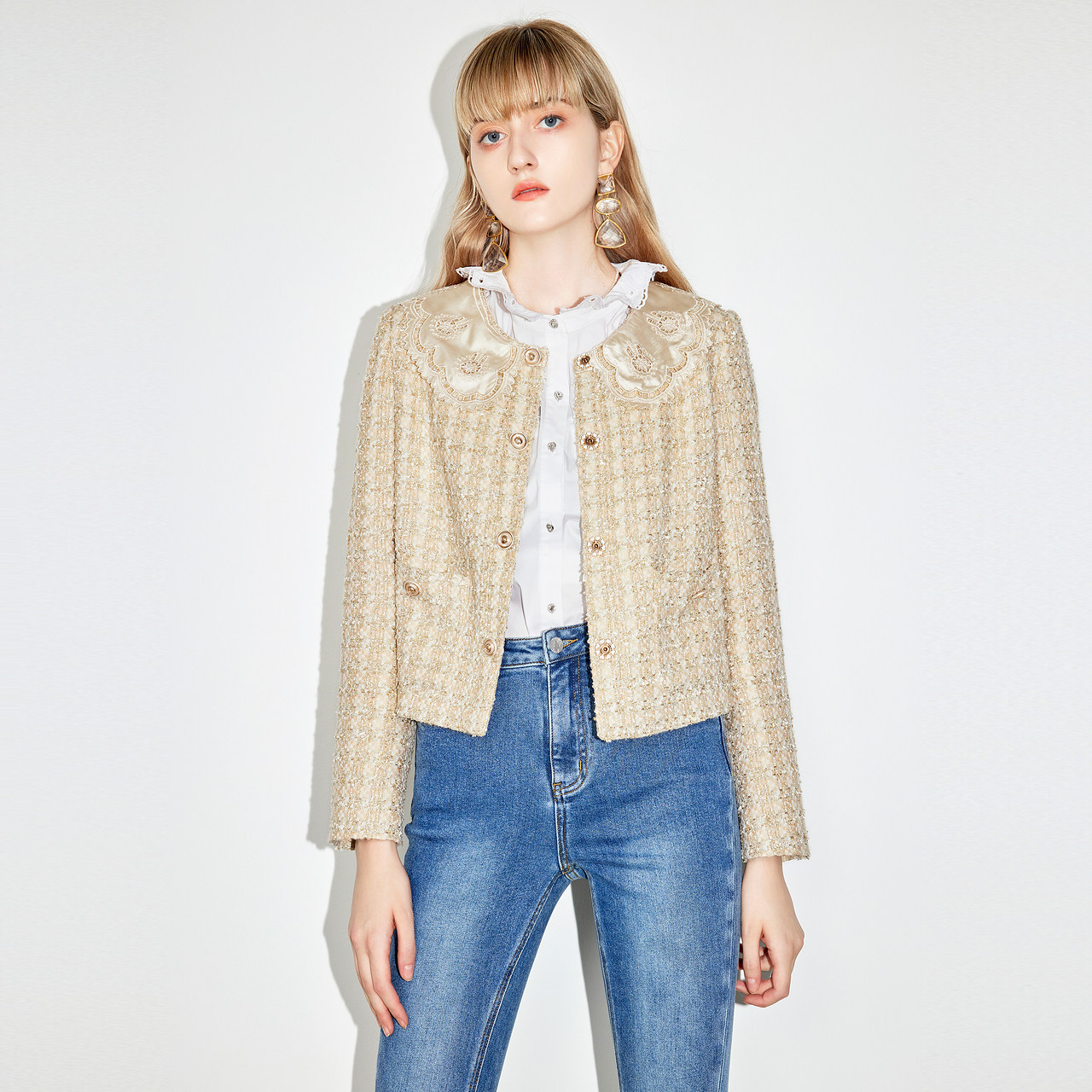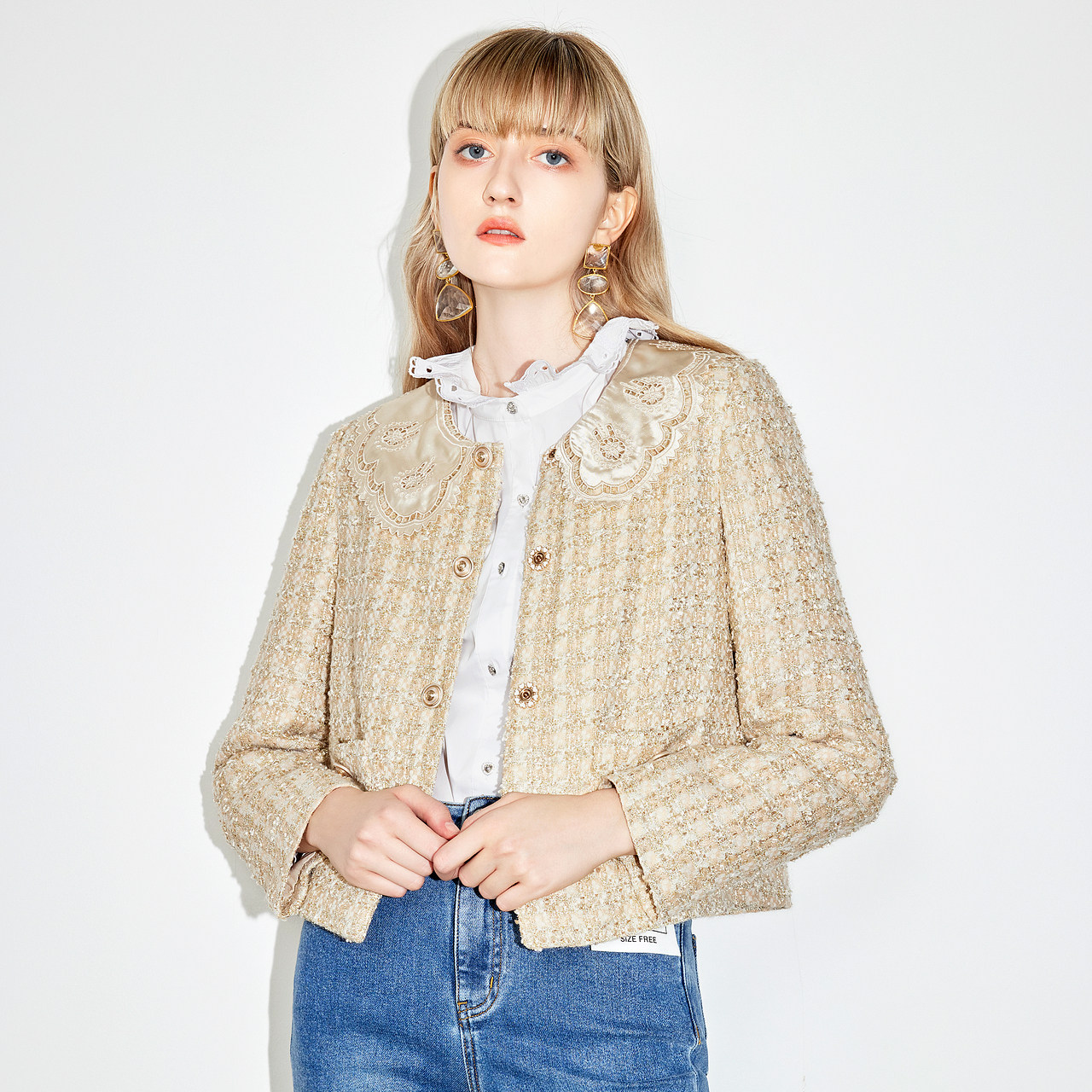miss COCOON2022 spring and autumn new women's clothing small fragrance tops lace collar short fashion embroidered coat