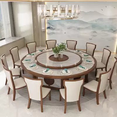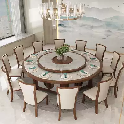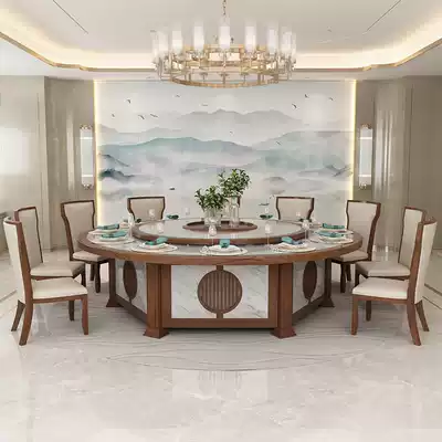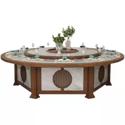Hotel electric dining table large round table solid wood turntable round table new Chinese style 15 people 20 people Hotel box hot pot table and chair
