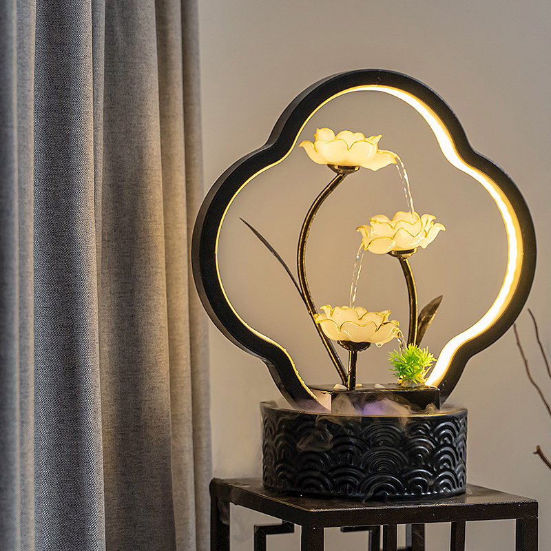 Chinese light lavish lotus flower circulating flowing water pendulum pieces home living room office room creative pendulum decoration pieces
