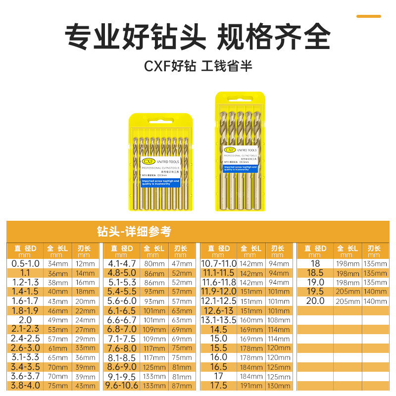 1.6-6.5 High Cobalt Drill Bit Set 13 1.0-10 High Cobalt Drill Bit Set 19 Pcs 1.0-6 High Cobalt Drill Bit Set 51 Pcs 1.0-13 High Cobalt Drill Bit Set 100 Pcs
