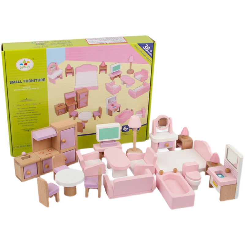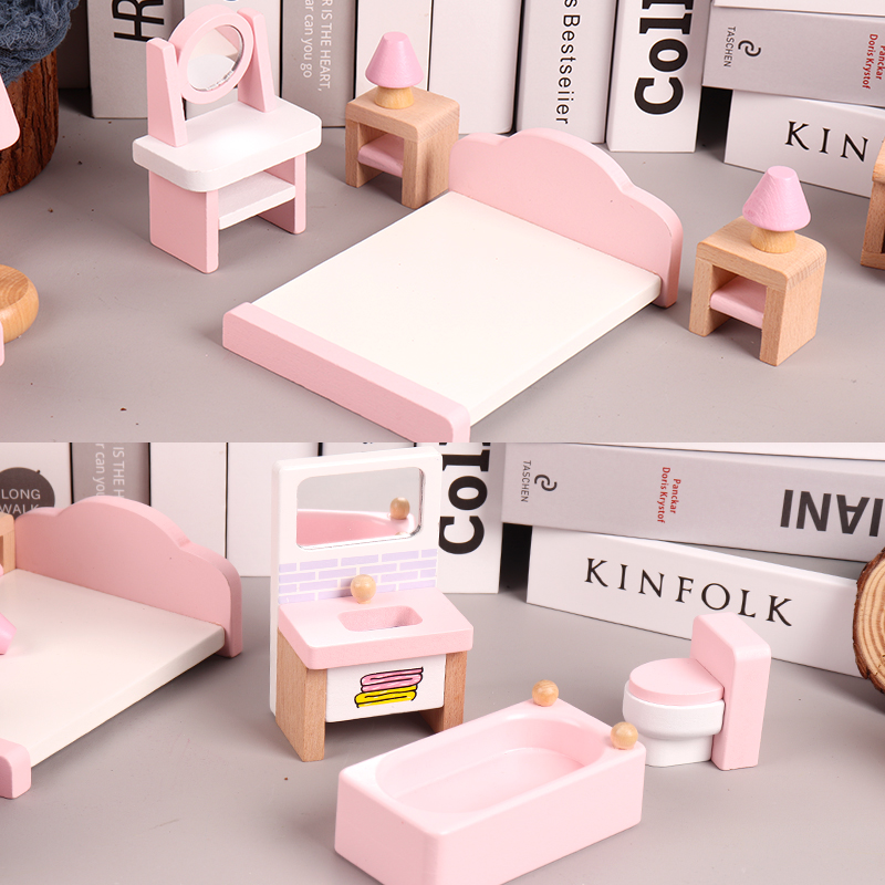 YLB wood emulation small furniture 22 pieces a bit of portable Nordic wind doll house a little new pink dream doll house