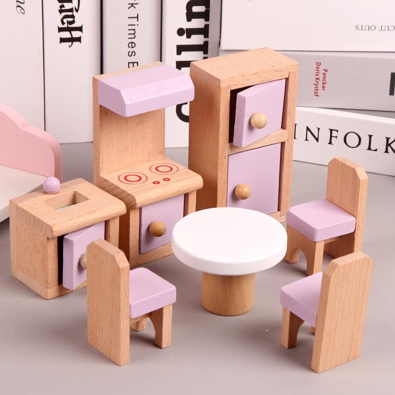 Wooden young children emulating a family home wine small furniture 22 pieces of house bedroom living room bathroom Kitchen Dining Room Toy